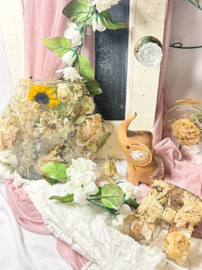 If your flowers have been around for years! Don't worry we can always create beautiful pieces with those too! I will have one in my gallery I did years ago with 6 year old red roses!